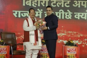 Ahead of the upcoming Bihar Assembly elections, Bharat Express News Network organized a grand Mega Conclave in Patna. This major event was held and saw participation from key leaders and representatives of various political parties. At the start of the event, Bharat Express CMD Upendrra Rai welcomed all the guests and said that this was the first major event organized in Patna since the channel’s launch. He mentioned that Bharat Express has appointed representatives in nearly every district across Bihar, Jharkhand, and West Bengal, but such a conclave was being held in Patna for the first time.
