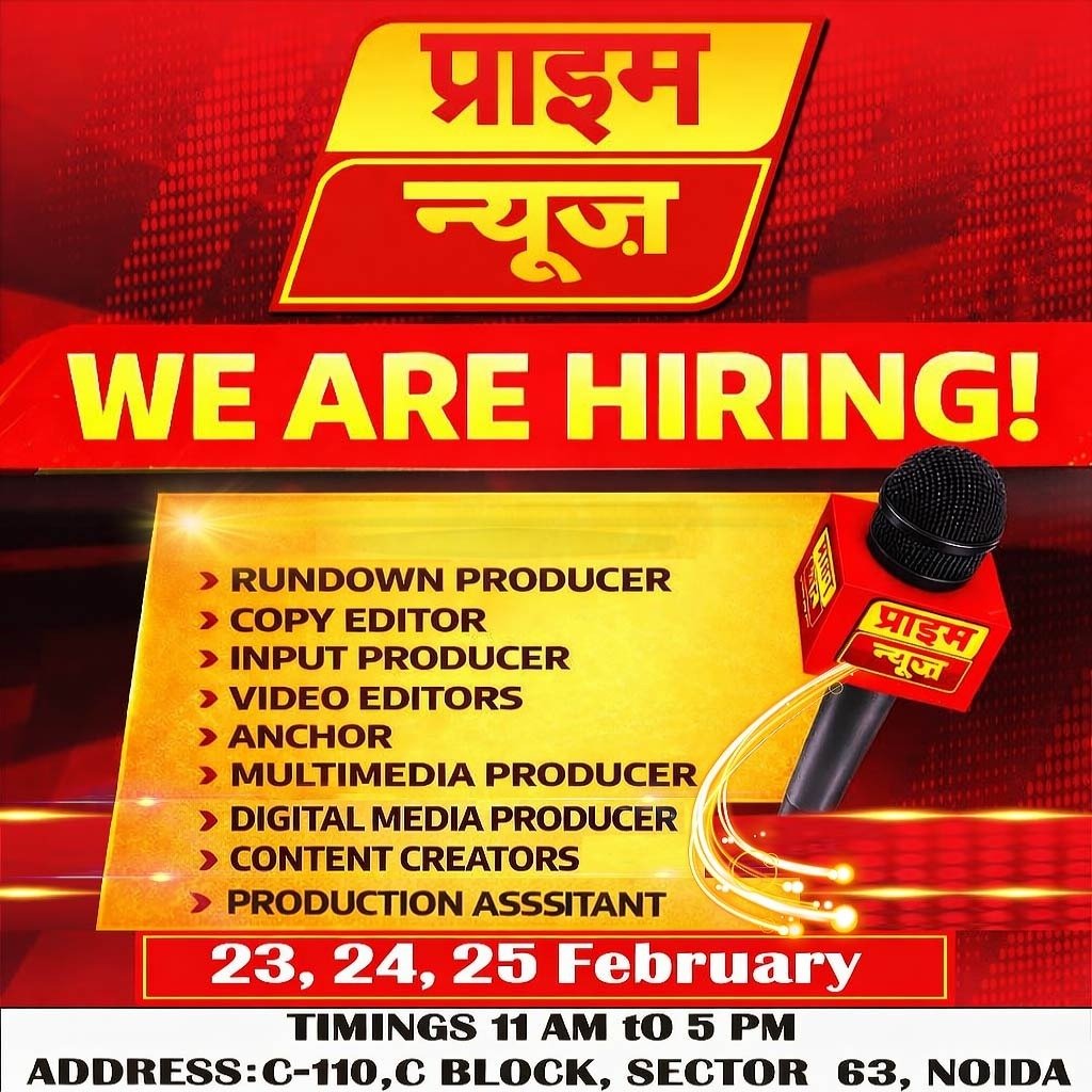 Prime News का कहना है कि वह ऐसे साथियों की तलाश में है जो न्यूज़ रूम की तेज रफ्तार और चुनौतीपूर्ण माहौल में रचनात्मकता और पेशेवर दक्षता के साथ काम कर सकें।