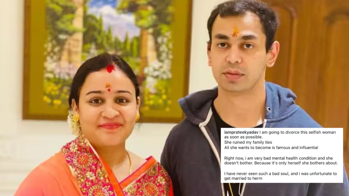 iamprateekyadav नाम के इंस्टाग्राम अकाउंट से की गई पोस्ट पर लिखा गया कि मैं अपर्णा को जल्द से जल्द तलाक देने जा रहा हूं। उन्होंने मेरे परिवार के रिश्ते खराब कर दिए। बस मशहूर और असरदार बनना चाहती हैं। अभी, मेरी मेंटल हेल्थ बहुत खराब है। लेकिन, उन्हें कोई फर्क नहीं पड़ता। क्योंकि उन्हें सिर्फ़ अपनी ही चिंता है। मैं बदकिस्मत था कि मेरी शादी उनसे हुई।