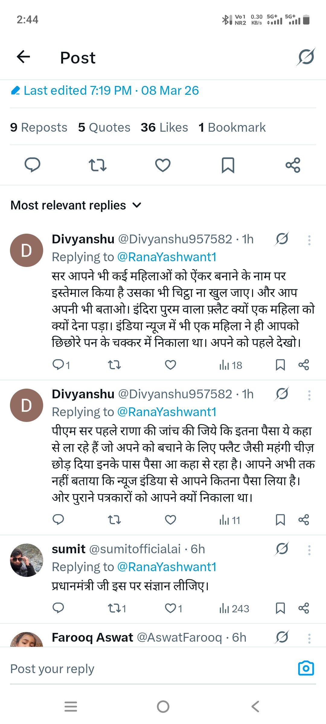 ​आर्थिक जांच की मांग: यूजर ने प्रधानमंत्री को टैग करते हुए राणा यशवंत की संपत्ति और न्यूज़ इंडिया से लिए गए कथित धन की जांच की मांग की है।
