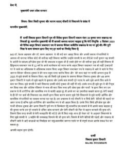 मैं प्रार्थी विकास कुमार तिवारी पुत्र श्री दिनेश कुमार तिवारी मकान नंबर 38 कृष्णा नगर लखनऊ का निवासी हूं। माननीय मुख्यमंत्री जी मैं आपको अवगत कराना चाहता हूं कि मेरी नियुक्ति 6 दिसंबर 2023 को दैनिक अमृत विचार समाचार पत्र में जनरल मैनेजर मार्केटिंग लखनऊ के पद पर हुई थी। मैंने पूरी निष्ठा के साथ संस्थान द्वारा दिए गए हर कार्य का निर्वाह किया है।
