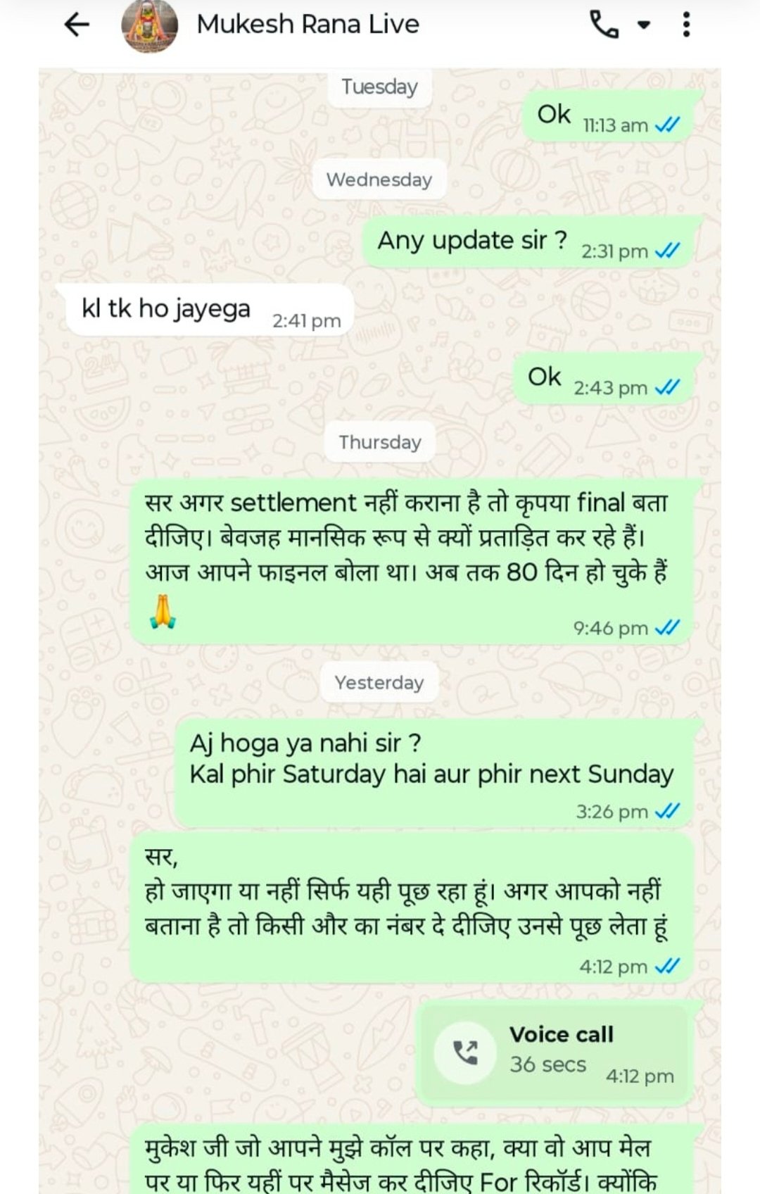 मुझे आए दिन आज कल का आश्वासन देकर टाल दिया जाता है, हाल ही में मेरे परिवार में स्वास्थ्य संबंधी दिक्कतें आईं, पैसों की काफी जरूरत की वजह से मैंने तमाम मिन्नतें की लेकिन फिर भी वेतन का भुगतान नहीं किया गया। हालांकि मैं ऐसा पहला शख्स नहीं हूं, इनके बारे में पता करने पर मालूम हुआ कि ये संस्थान कर्मचारी के छोड़ने पर उसके हक की कमाई पर ऐसे ही डकैती डालता आया है। बहुत से लोग हफ्ते दस दिन की सैलरी छोड़कर उलझना नहीं चाहते लेकिन मैं अपनी मेहनत का एक रुपया ऐसे डकैतों को हजम नहीं करने देना चाहता।