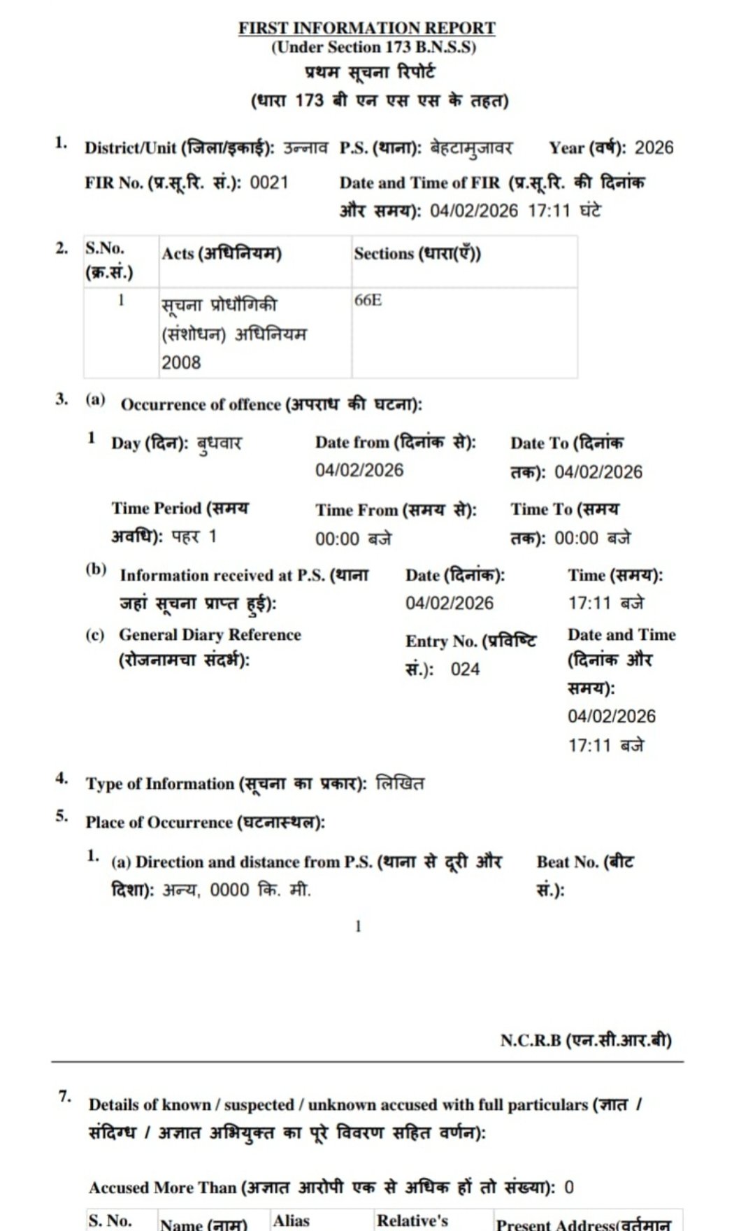 पुलिस ने मामले की गंभीरता को देखते हुए एफआईआर संख्या 0021/2026 दर्ज कर ली है।